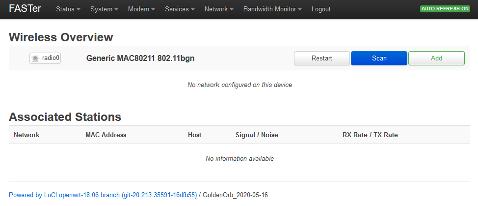 Luci Network -> Wireless November 12, 2020 974 × 419 Luci Network -> Wireless Wireless setup screen upon first opening Network -> Wireless